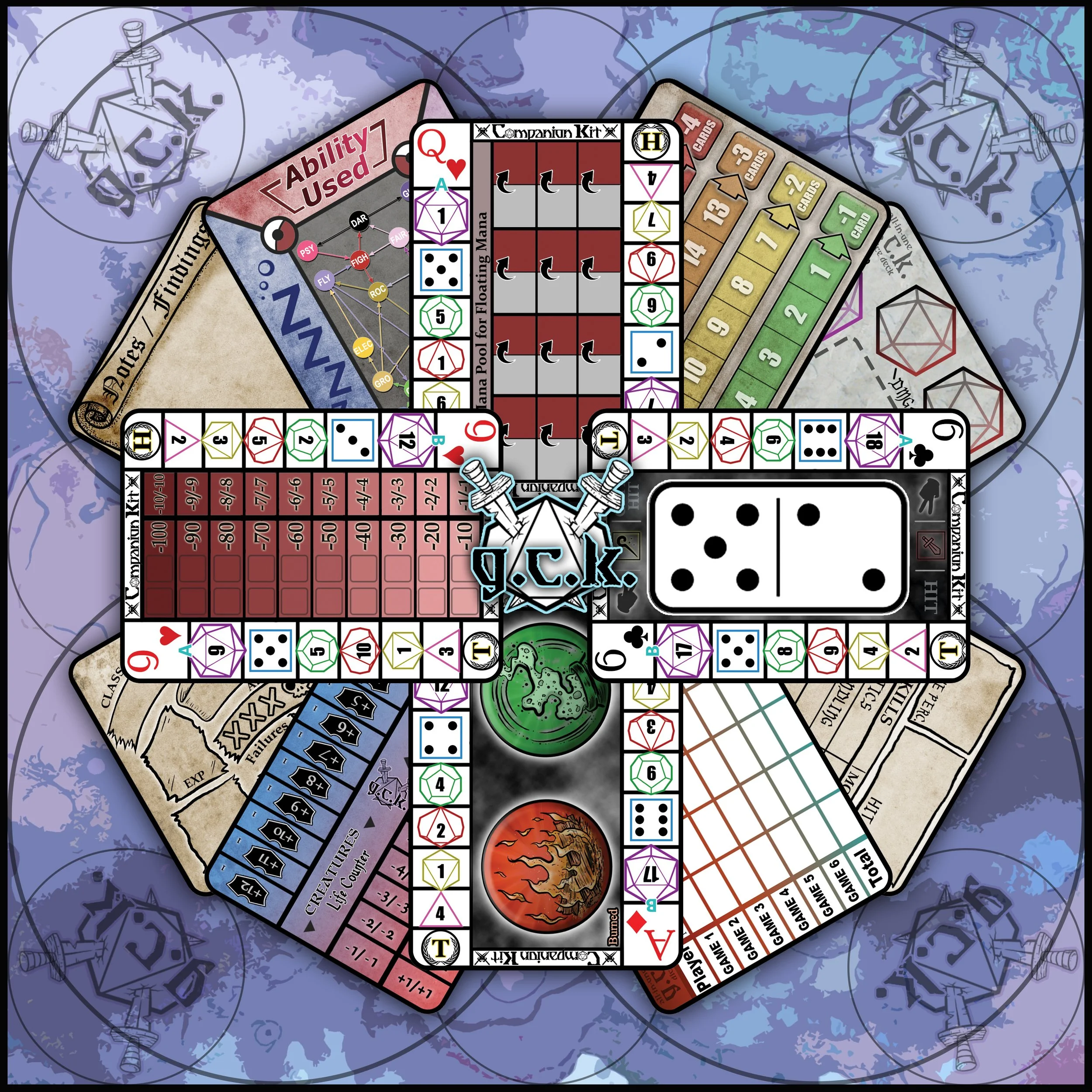 The G.C.K. Duelist Pack is a sub set of cards that have similarities to the original Gamer Companion Kit but do not offer the entire package of features. The Duelist Pack is geared specifically for Trading Card Games for those specific game nights. These cards do not have randomizers like dice and coins and do not have a 52 playing card deck built in. These are for players who specifically want tools and guides for their trading card game nights.