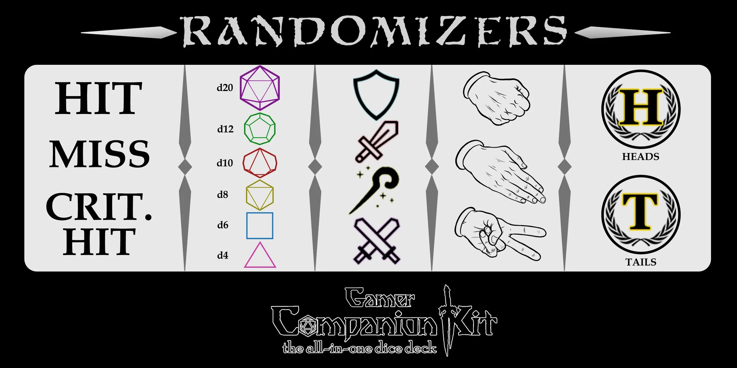 The Gamer Companion Kit is an all-in-one dice deck with tons of built in tools and features to help aid table top players during their game nights with friends and family. With different randomizers, tokens, counters, trackers and such, players will be set with just this one deck and no other need for other components. The G.C.K. is perfect for traveling, conventions, or simply heading to a friends house and not wanting to be weighed down by dice bags and boxes.